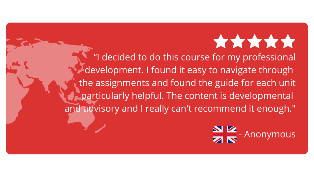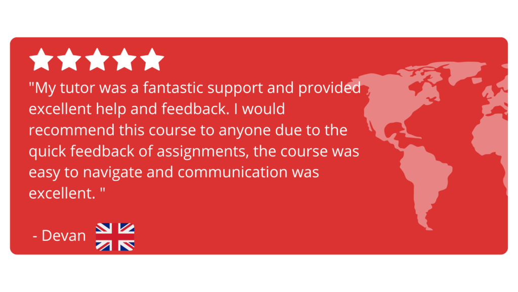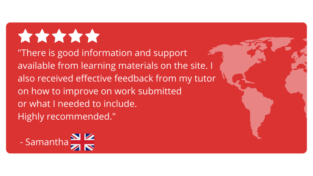 No deadlines – We do not impose any deadlines on our courses; you can complete the qualification entirely at your own pace throughout the duration of the course.