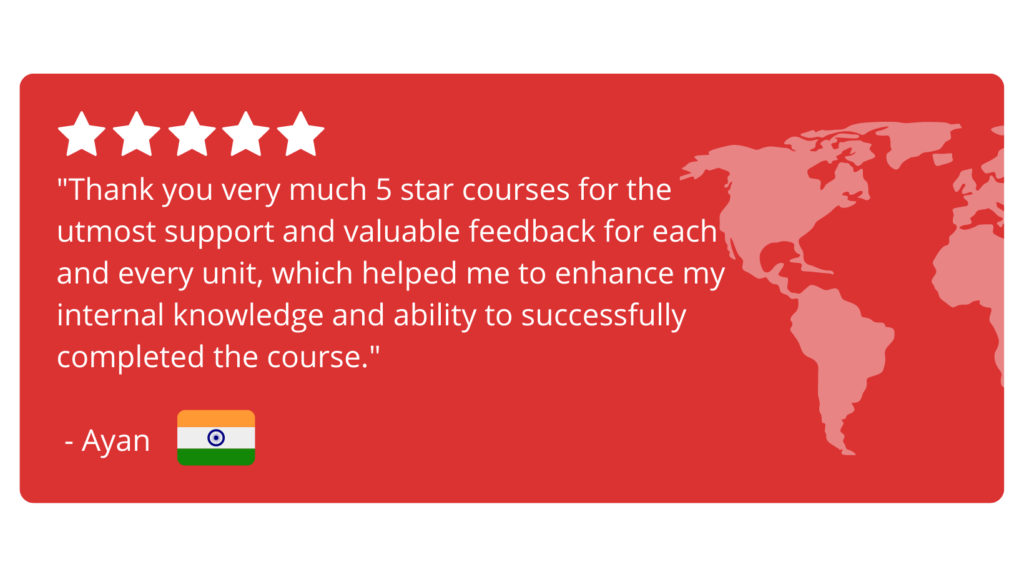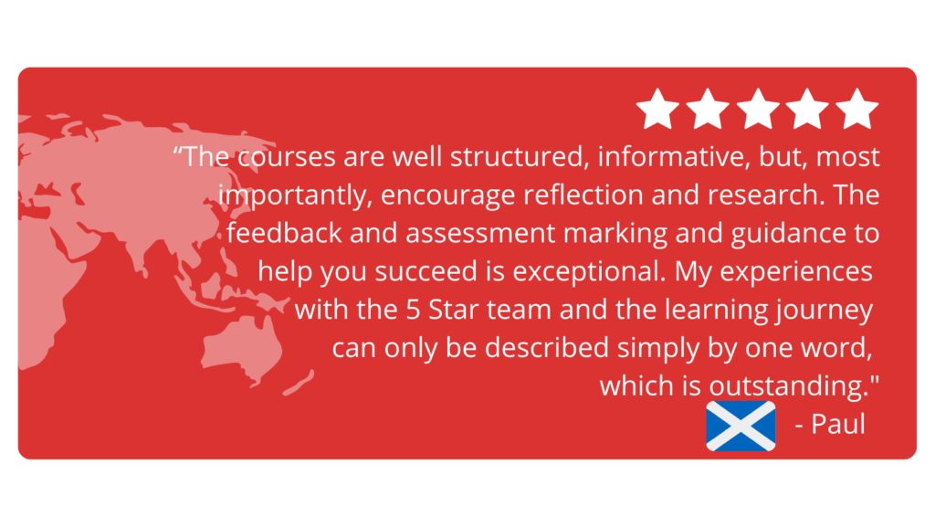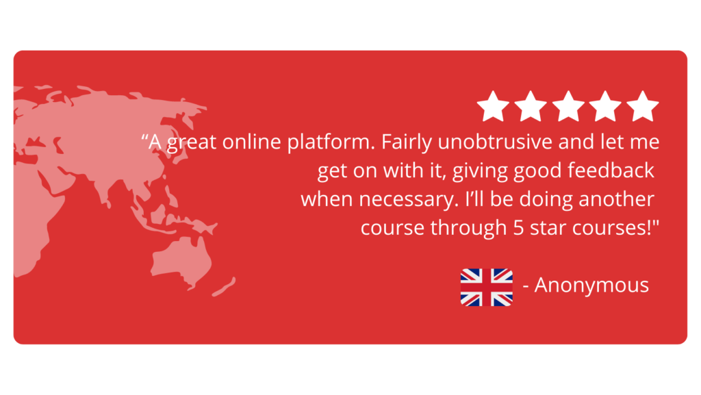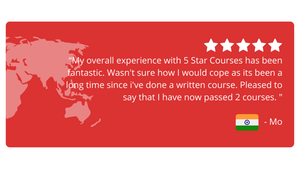 At 5 Star Courses, we pride ourselves knowing our fees are completely all inclusive. Our fees include: