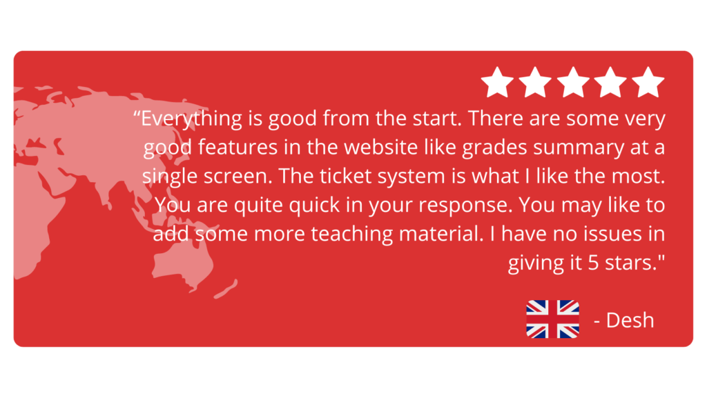 Support team – You will receive live support throughout the duration of your course. Our amazing Support Team are available around the clock through our support system, just submit a ticket with your query and we will provide a same day response!
