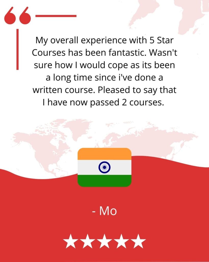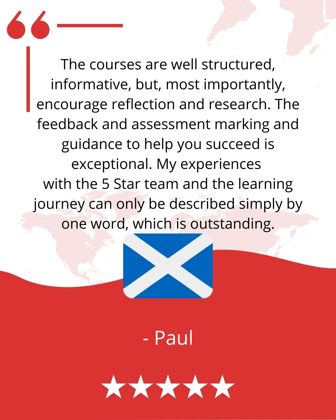 Take a look at just a few of the testimonials and reviews that are submitted by the students that have completed a qualification with us at 5 Star Courses!